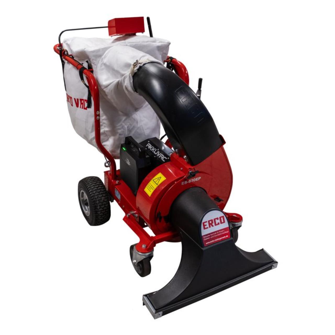 Der leistungsstarke 1,5 kW Asynchron Elektromotor des ERCO ES-670E Akku-Laubsaugers sorgt für zuverlässige Performance ohne Emissionen. Das innovative ERCOFAN Lüfterrad ist besonders effizient und leise entwickelt und schont sogar Kleinstlebewesen beim Saugvorgang. Der neue Lithium NMC Akku von ERCO garantiert eine lange Laufzeit von bis zu 75 Minuten für unterbrechungsfreies Arbeiten. Das 7-Gang Differentialgetriebe mit Rückwärtsgang ermöglicht perfekte Geschwindigkeitsanpassung an jede Arbeitssituation - die sechs Vorwärtsgänge und der besonders praktische Rückwärtsgang machen auch Bereiche zugänglich, die kein Wenden erlauben. Mit 95 kg Gewicht ohne Akku und den Abmessungen 170 x 77 x 117 cm bietet der Akku-Abfallsauger optimale Stabilität bei professionellen Einsätzen.